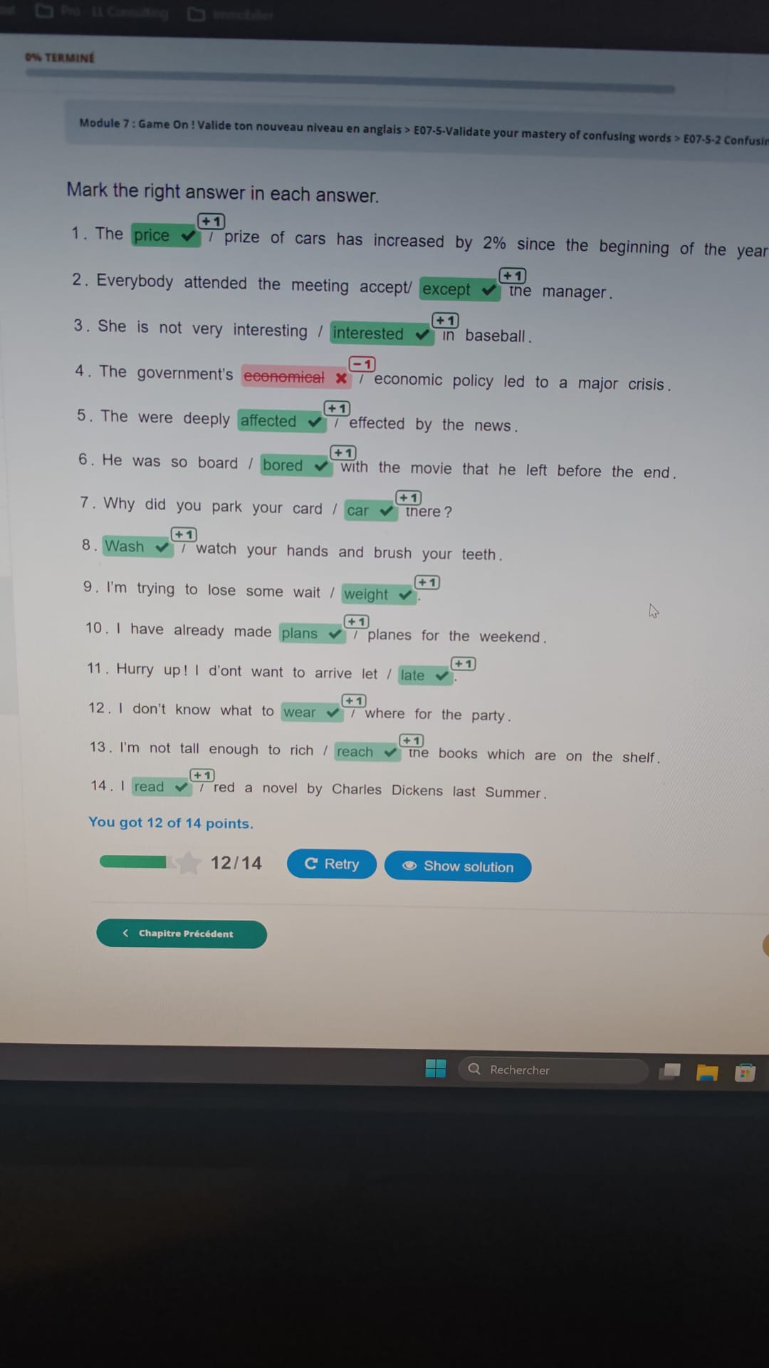 Mark the word - It showed 12 correct points instead of 13