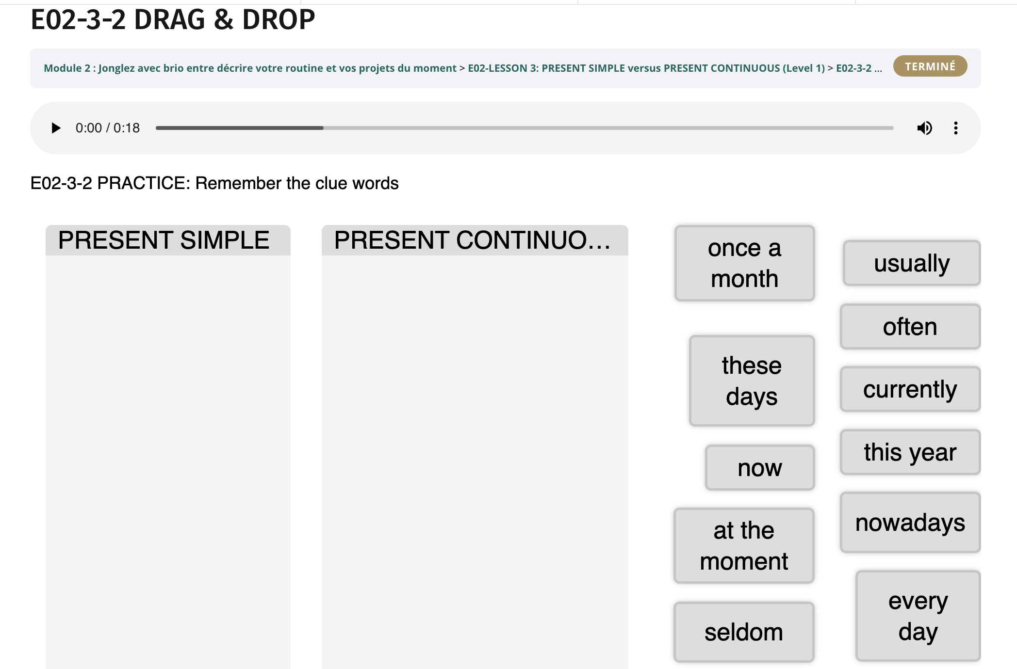 The dragged word is necessary droppedn in the expected column.