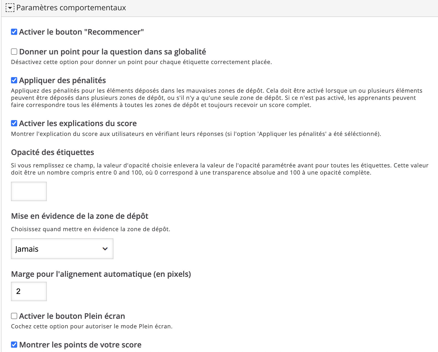 3. Edit each drop zone to place a check on the correct draggables.
