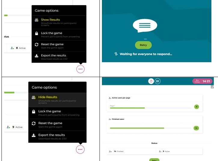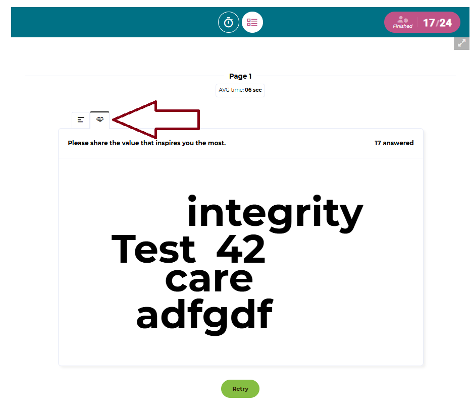 An indicator would be very helpful, but my settings look exactly as in the screenshot you shared. I tested again with that setting showing both "show" and "hide," but I still don't see the word cloud after submitting. So, with the setting as shown in your screenshot, I see "waiting for others to respond," and with the other option on, I see the presenter's view, but not the word cloud as in the demo you shared. As mentioned earlier, I tested in different browsers and incognito tabs. Nothing seems to bring up the word cloud for me. Here's my link with the updated setting https://unthsc.h5p.com/content/1292793390499913908. Thanks again for your help!