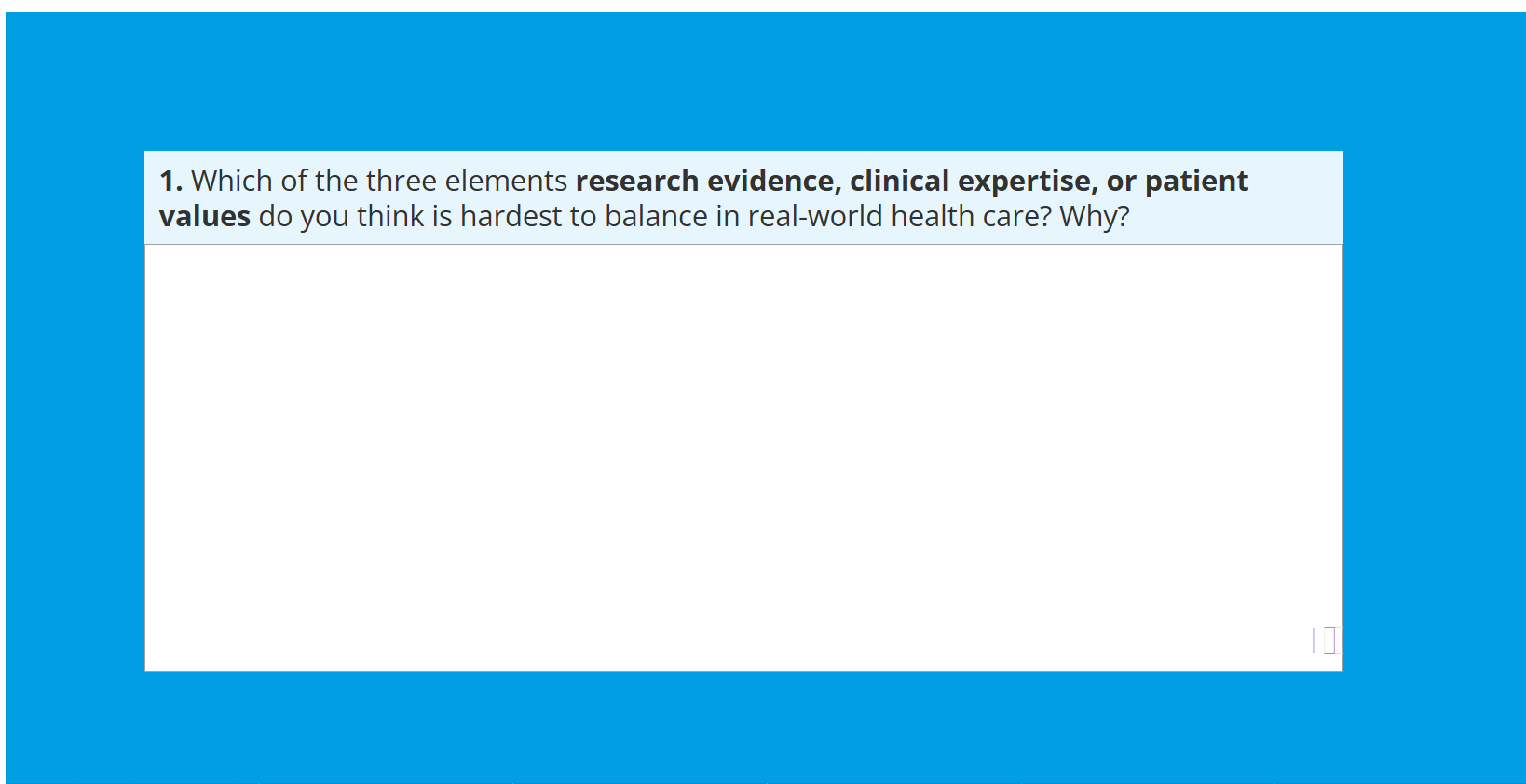 Using course presentation h5P, the button to open the feedback comments is not visible on the slide. You can see in the attachment it is a light box in the bottom right hand corner. If the user clicks this area the feedback opens. How do I make this feedback button more visible.
