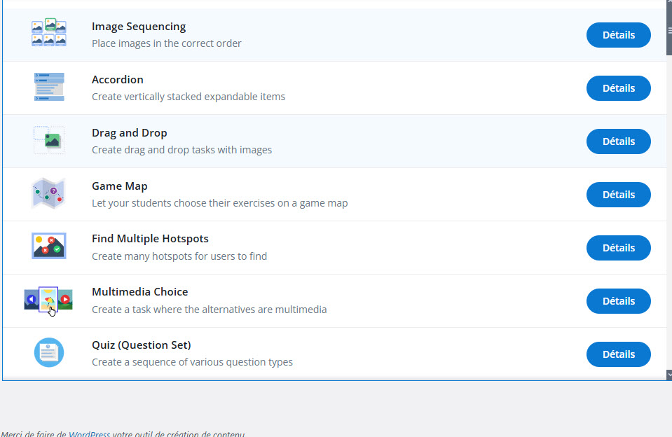 BV, thanks for the assistance, I get an error when I upload your correct MM choice sample. The main problem is I don't see any update option for this content event with an updated cache. Would it be a solultion to remove the h5p plug-in and reinstall it. When removing h5p, does it remove all my created contents ? or maybe there is a way to update by inserting manualy files ?