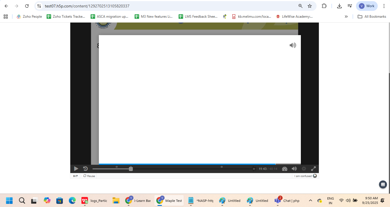 I am facing an issue with the interactive video. I created an interaction and added a single question set. When I add more than five questions in the set and attempt an incorrect answer, I am unable to move forward as per the criteria set. If I try multiple attempts, the screen gets stuck. The only way it starts working again is when I refresh the page or minimize and maximize the screen. For your reference I have also attached the screenshot.
