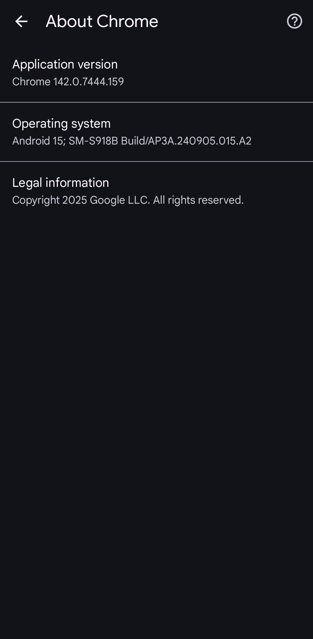 3. i used my own samsung S23 ultra, android 15, chrome browser. further details in screenshot with balck background.