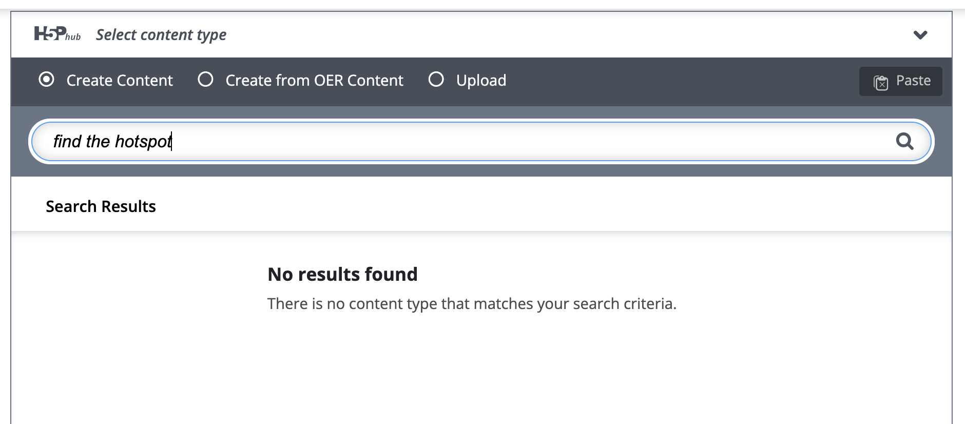 I am trying to create a Find the Hotspot activity, and it's not one of the options in the menu. I can't find it by scrolling or by searching.